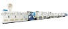 PE Pipe Production Line for diameter from 16-1600 mm PE series plastic pipe production line is mainly used in the area of agricultural water supply system ,architectural water supply system ,pavement of cables ,etc. This machine group consists f mainly of vacuum calibrating tank ,haul-of unit,cutting unit and stacker ,etc. Single screw extruder and haul-off unit have applied imported A/C inverter, both vacuum pump and driving motor have applied excellent products. The haul off unit includes two-claw type ,three-claw type ,four-claw type,six-claw type,eight-claw type ,and ten claw type ,etc. Scraps free cutting ,saw cutting ,or planetary cutting can be applied. the property of machine group is reliable ,the production efficiency is high.